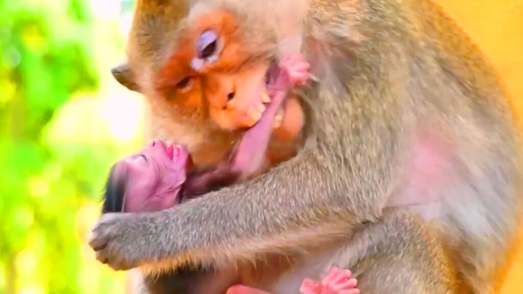 In the heart of the forest, little monkey BB sat quietly under the shade of an old tree. His eyes were filled with sadness, and his small body trembled with weakness. For days, BB had longed for the warm comfort of his mother’s milk, but she had begun to wean him. It was nature’s way, but for BB, it felt like the world was turning against him. Each time he reached out to cling and nurse, his mother gently pushed him away. Her heart was heavy, but she knew her baby must grow strong on his own.