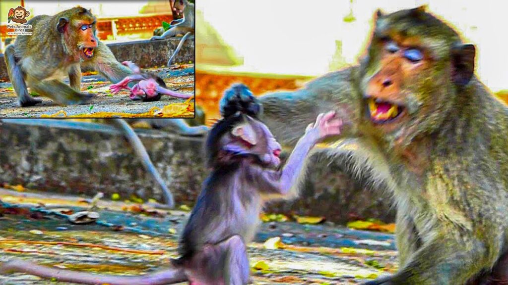 With his strong presence and calm authority, Papa Waki approached. Chago froze, his big eyes blinking nervously. The lesson began — not with anger, but with a firm reminder of respect and discipline. Waki gave a gentle tap and a stern look that made Chago’s heart beat faster. The little one let out a frightened squeak, then scrambled away, crying softly as he ran toward Mama Nari.