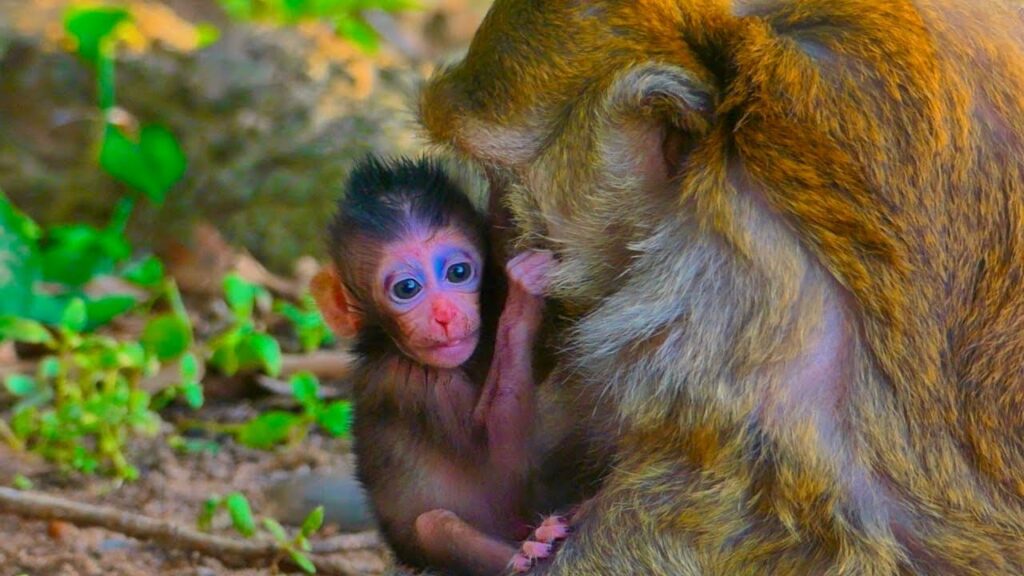 In the quiet corner of the forest sanctuary, a tender moment unfolded between elderly mother monkey Brinn and her tiny baby, Braxton. As the cool morning breeze swept through the trees, little Braxton, still so new to the world, began to shiver slightly. Without hesitation, Brinn wrapped her frail but loving arms around him, pulling him close into her chest. The warmth of her body, aged and gentle, was like a soft blanket to the baby.