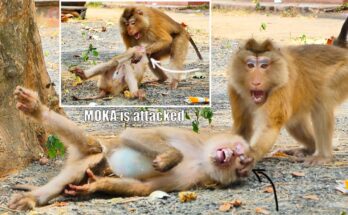 Emotional Moment! Baby Monkey Cries Softly When Mom Doesn’t Notice Him