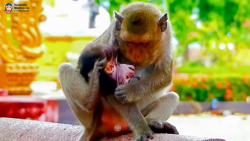 In the quiet corner of the forest, a tiny baby monkey clings closely to its mother, seeking comfort, warmth, and the familiar rhythm of her heartbeat. For the newborn, every gesture and movement from mom is a world of meaning. Yet, in this tender stage of life, the little one often struggles to fully understand her behavior.
