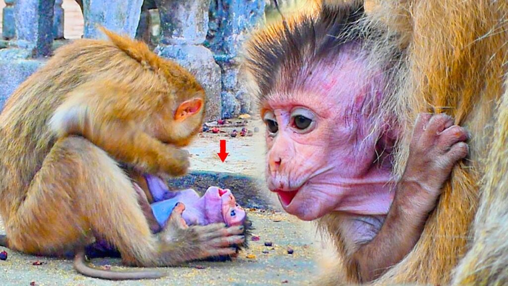 Meanwhile, the mother monkey was searching frantically. Her eyes were wide with worry as she moved through the forest, sniffing the ground and calling out in desperate chirps. Her strong instincts led her back to the area where the troop had been before the disturbance, and her ears twitched at the faint sound of her baby’s cries.