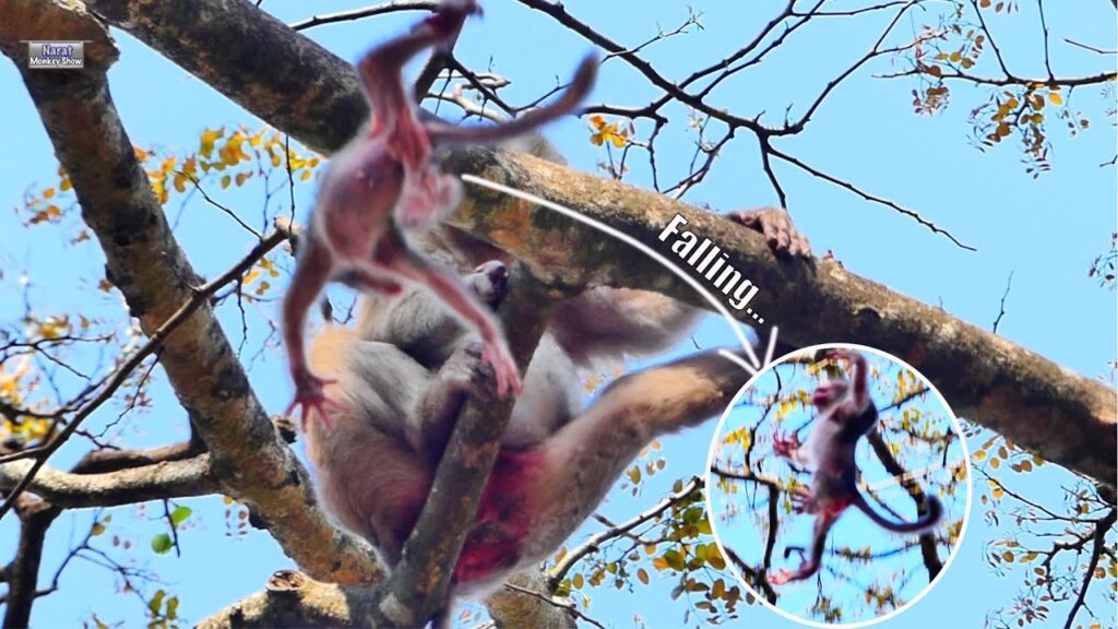 First Seeing old MaMa pigtail r-e-j-e-c-ted to a-b-a-ndon & d-r-o-p newborn 1 day old from high tree