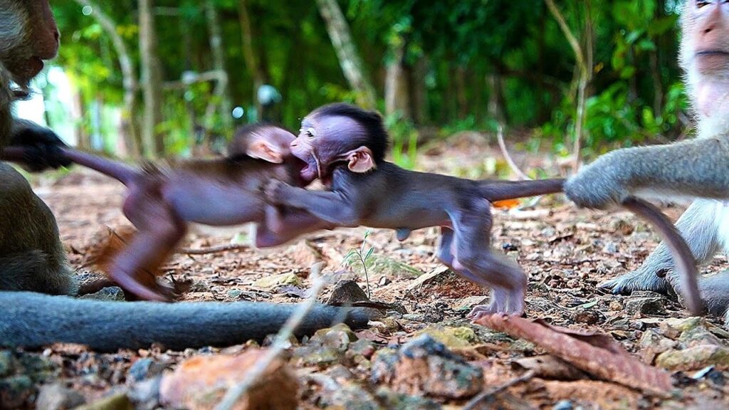 In the heart of the monkey troop, a hilarious scene unfolded between two of the youngest and most entertaining members—Baby Braxton and little Maxwell. Both full of energy and mischief, they turned an ordinary day into a show for everyone around.