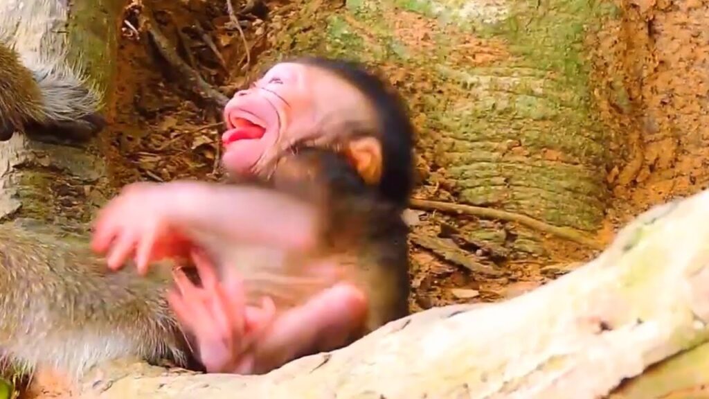 The first moments of life are always full of tenderness, vulnerability, and emotion. A newborn baby monkey is one of the most fragile sights in nature, and every little gesture from its mother carries deep meaning. On this particular day, a tiny newborn lay in the gentle but aging arms of its mother. She was tired, her movements slower than before, yet she was doing her best to care for the little one. With her trembling hands, the old mother carefully placed her newborn on the ground, perhaps wanting to rest or encourage the baby to try its strength.