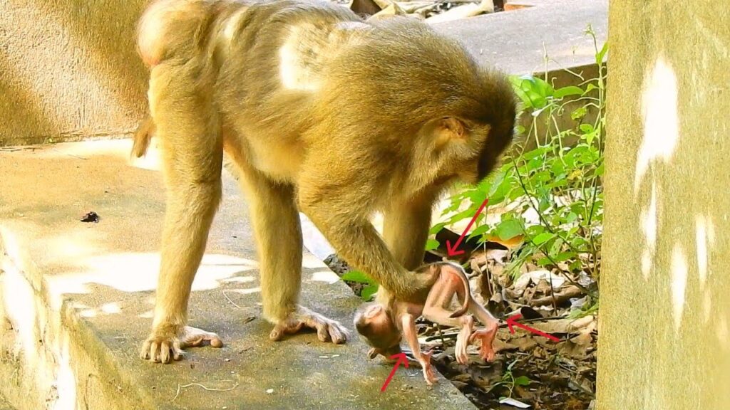 But when the mother, tired and needing rest, tried to gently place her baby on the ground, the little one began to scream and cry. His voice, though small, carried deep emotion, as if he was pleading not to be left alone. Each cry echoed in the air, sharp and heart-wrenching, showing how much fear and helplessness the baby felt. For him, the ground was cold, unfamiliar, and unsafe. His body trembled, and his tiny face scrunched with tears that refused to stop.