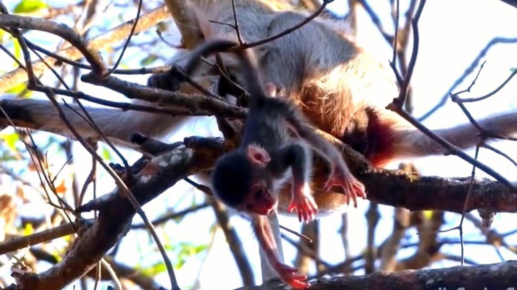 In the wild, every newborn baby monkey depends completely on its mother for warmth, milk, and protection. But sometimes, not every mother shows the same level of care. A heartbreaking moment was captured when a tiny newborn, still fragile and weak, almost slipped from its mother’s arms because she was not paying close attention. The baby, clinging tightly with all its little strength, cried out as if calling for help.