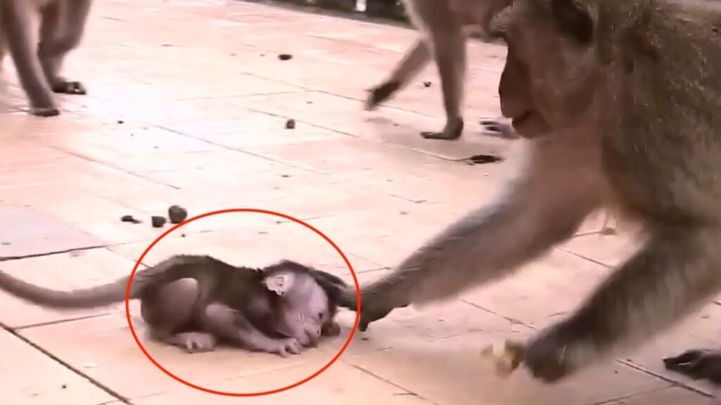 In the quiet forest clearing, a newborn baby monkey entered the world so fragile, so tiny, yet full of life. His first breaths were shaky, and his soft cries echoed across the branches. The little one’s body trembled, unsure of the strange new place he had been pushed into. What should have been a gentle moment of comfort quickly turned confusing. The father monkey, restless and unsure of how to handle the tiny life, nudged the baby roughly, almost trying to push him away from the safe nest.