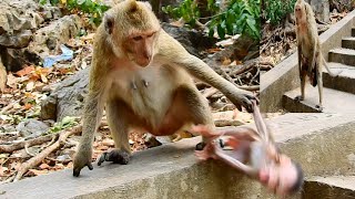 The moment of birth is always a delicate and precious time, not only for humans but also for animals in the wild. A newborn baby monkey, just entering the world, is fragile and completely dependent on the care of its mother. In this heartbreaking scene, the tiny baby has just been born, its body still wet and trembling from the process of birth. Instead of immediately lifting her infant into her arms for warmth and safety, the mother leaves the baby on the cold ground.