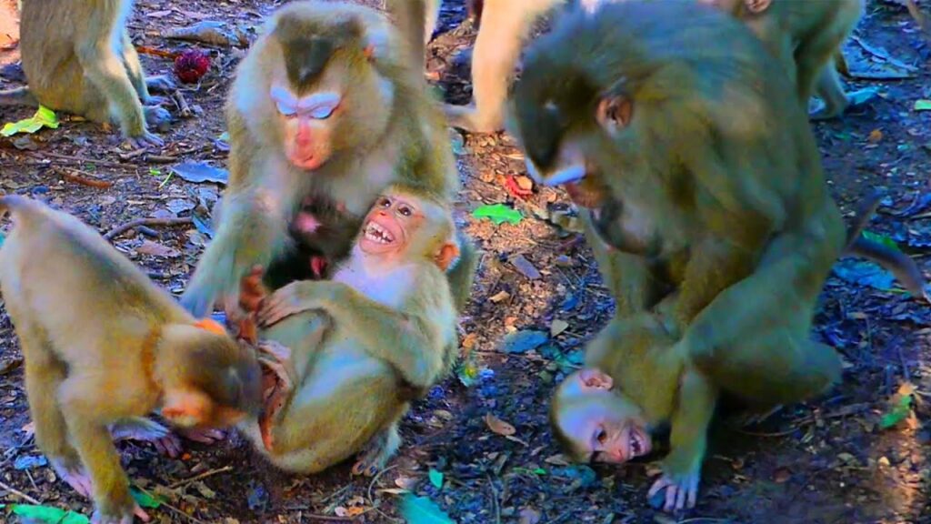 Leo, though just a baby himself, came closer and reached out a hand to comfort his sister. Rainbow stayed close, offering her quiet support. Even the elder monkeys paused to watch in concern—it was clear that something serious had unsettled the little group.
