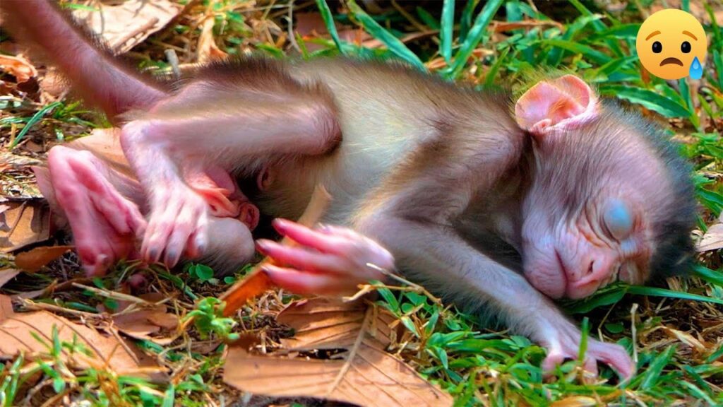 In the quiet corners of the forest, a heartbreaking scene unfolds. A tiny baby monkey, so fragile and innocent, sits alone with eyes full of confusion and fear. The little one clings tightly to the ground, searching desperately for warmth, comfort, and above all, the loving embrace of its missing mother. Without her, the baby looks lost, vulnerable, and utterly pitiful. Every cry echoes through the trees, a plea for help that no one seems to answer.