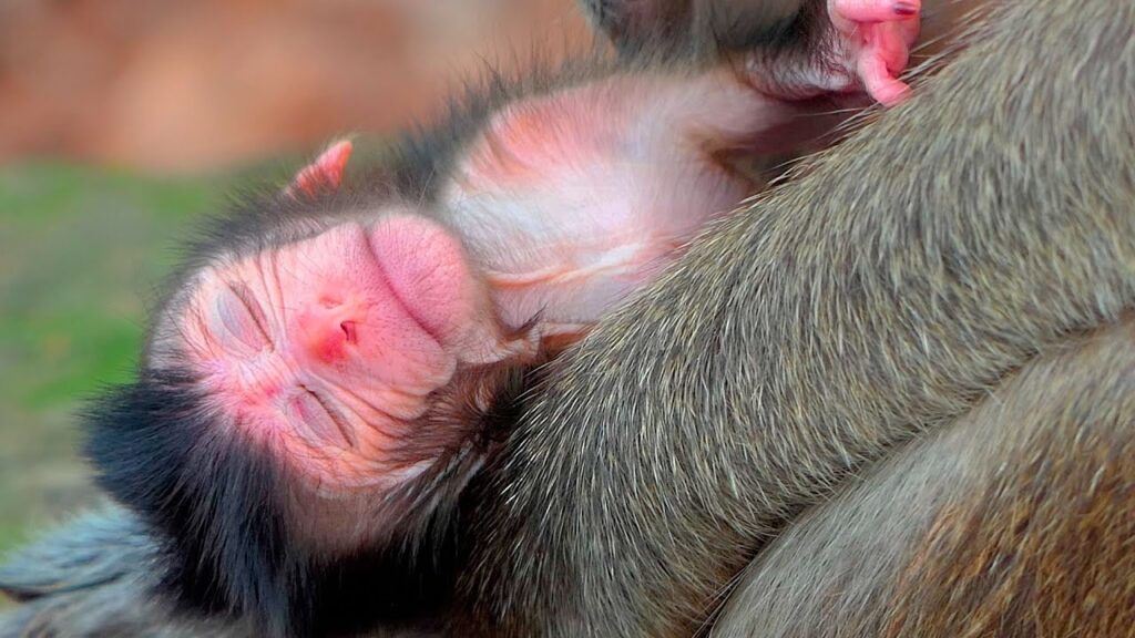 The baby, though tiny and fragile, clung tightly to its mother’s chest immediately after birth. The first cries echoed softly, signaling new life and a new beginning. Other monkeys gathered around curiously, some keeping their distance while others looked on with admiration. The troop seemed to understand the importance of this new arrival, and a sense of calmness and celebration filled the group.