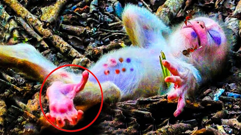 A newborn baby monkey, only a few hours old, lies on the cold ground, its tiny body still trembling from the shock of birth. The air is thick with uncertainty. There’s no playful energy yet—just the fragile heartbeat of a life that has barely begun. In the background, the mother seems confused, pacing nervously. Her instincts may not have fully awakened, and the baby is left helpless, its eyes closed, lips searching in vain for warmth and milk.