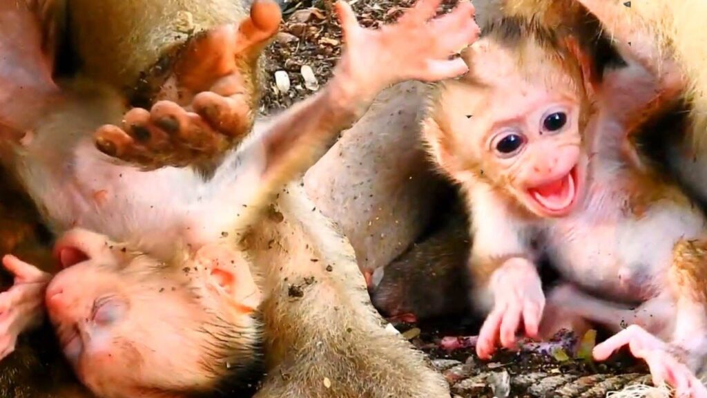 The cries carried the sound of fear and hunger, calling out for comfort and safety. The ground felt cold, and the little monkey’s body was too weak to rise again quickly. Each attempt to push up failed, leaving the baby frustrated and heartbroken. The world seemed too big, too heavy for such a tiny soul.