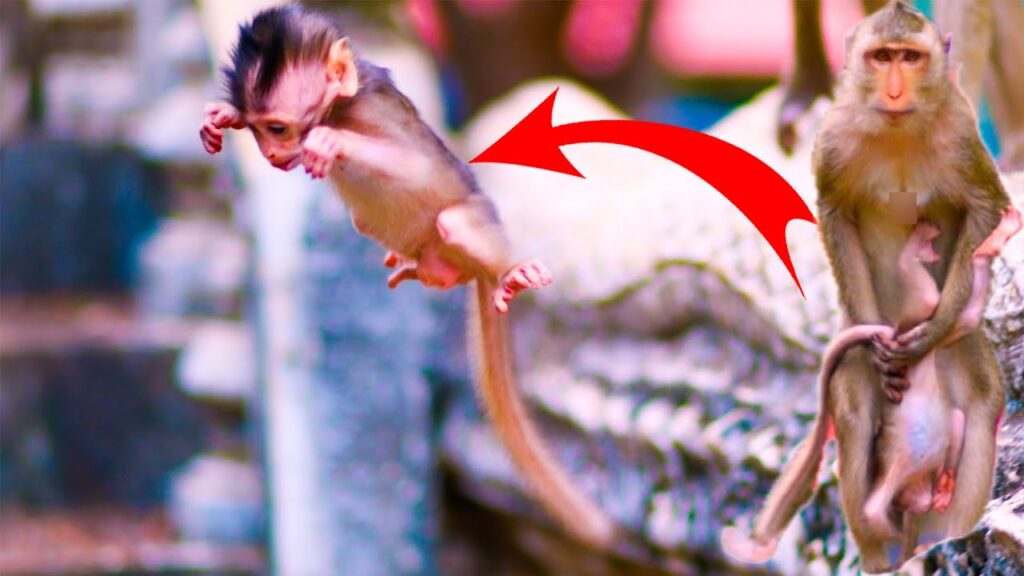 A terrifying moment unfolded in the forest when tiny baby monkey Bely made a shocking leap from a high branch in a desperate attempt to escape from aggressive adult female, Mila. The air was filled with tension, and everything seemed to freeze as Bely, just a few weeks old, squealed and jumped from the towering tree branch — a moment that left onlookers gasping in fear.