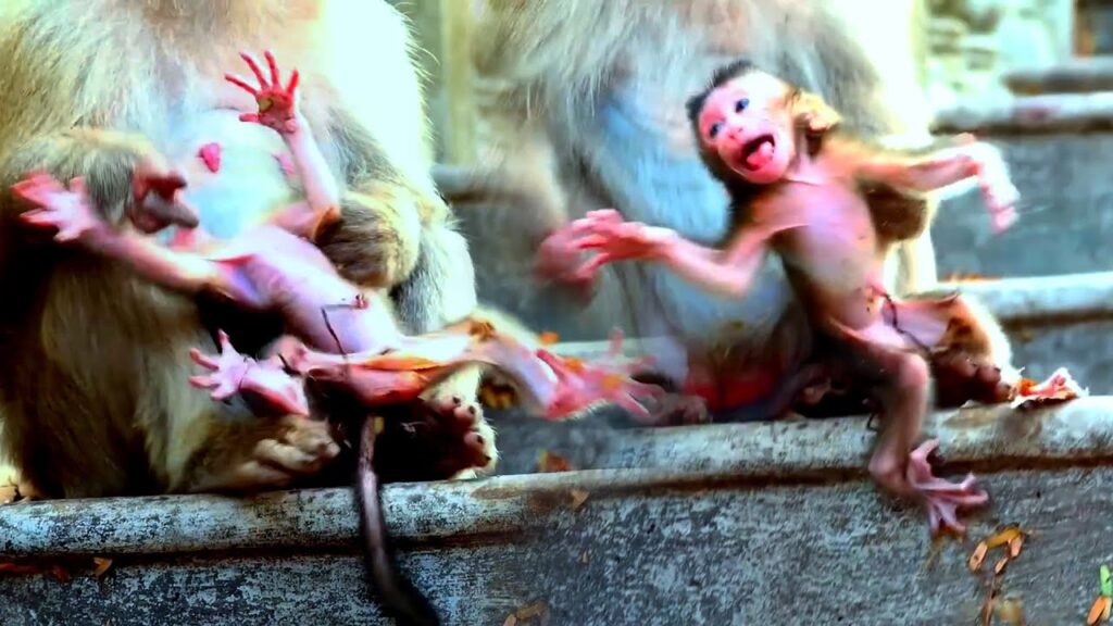 At times, the mother hesitated. Her grip loosened, her movements unsure. Each second felt dangerous, as if one wrong step could change everything. The newborn struggled to hold on, his tiny fingers wrapping tightly around his mother’s fur, begging without words for comfort and care. His cries were not only for milk or warmth, but for understanding.