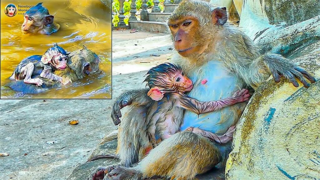 Nearby, her tiny baby sat close by, wide-eyed and curious. The little one’s gaze never left Manda, as though watching her every move was the most fascinating show in the world. The baby tilted its head, tiny fingers fidgeting with the ground, trying to understand why Mama seemed so delighted by the shimmering water. Every time Manda lifted her arms to playfully splash the surface, the baby blinked and giggled, reacting with innocent amazement.