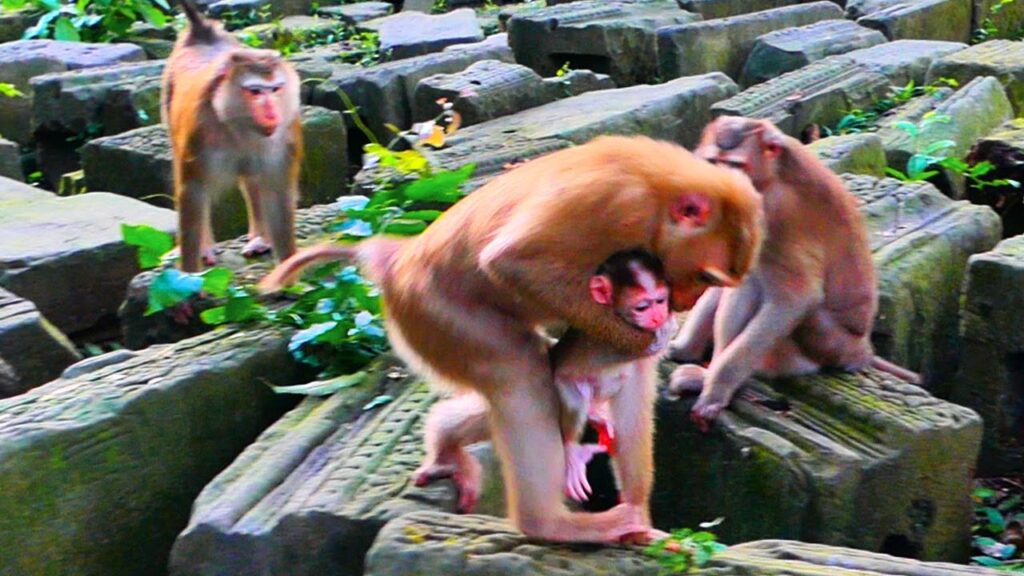 Finally, Luna took advantage of a moment when Amanda became distracted by another female approaching. With a swift and determined move, Luna darted in, wrapping her arms around her baby and holding him tightly against her chest. Lynx’s cries immediately softened, and his tiny body relaxed in his mother’s warmth.