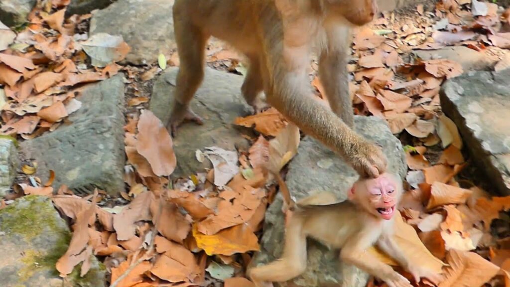 Poor little Lily, the tiny baby monkey, was having such a sad day in the troop. Early in the morning, she tried to follow her mother, Libby, who was busy searching for food among the trees. Lily’s tiny feet slipped on a branch, and she tumbled down onto the dusty ground. The little one gave out a heartbreaking cry, her small body trembling from both pain and fear.