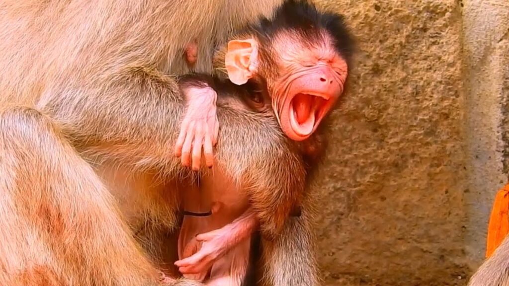 The baby lies in the safety of a warm blanket, tiny fingers curling as sleep slowly arrives. Just before drifting off, the baby lifts its chin, opens its little mouth as wide as possible, and releases a long, adorable yawn. It’s not only a sign of tiredness but also a beautiful reminder that this tiny life is learning and growing each day. The huge opening mouth, followed by soft coos, makes everyone nearby smile with joy.
