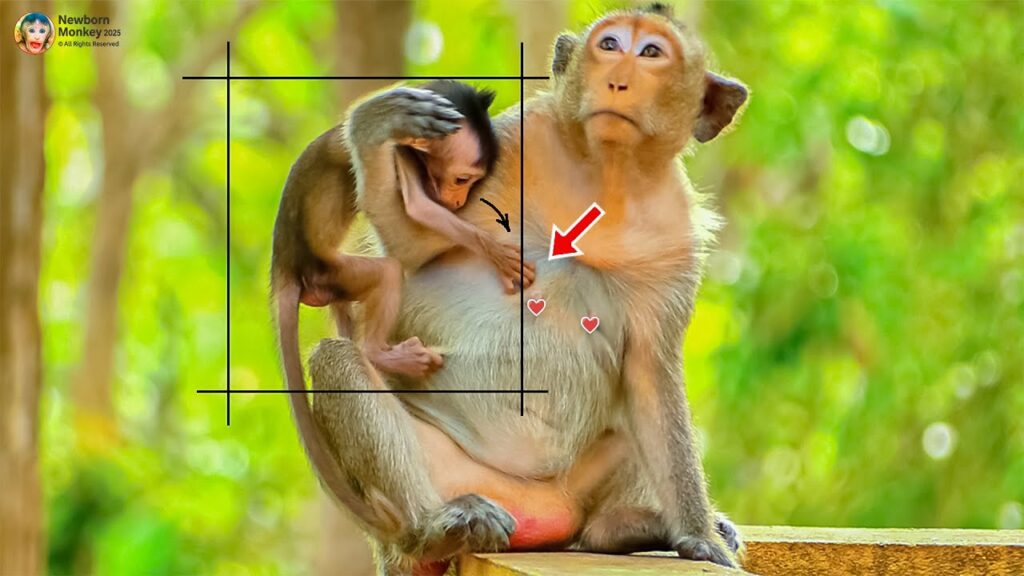 In a quiet corner of the forest, a tiny baby monkey desperately clung to his mother’s belly, his mouth searching for the comfort of milk. His soft cries pierced the still air, a heart-wrenching sound that revealed his growing hunger and frustration. The mother, however, appeared distant, her eyes scanning the surroundings, ears twitching at every movement in the trees. Whether it was a threat nearby or simple distraction, she was clearly not focused on her little one’s needs.