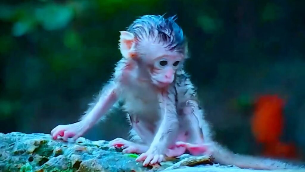 The forest was quiet after a sudden heavy rain, but one small figure stood out in the chilly air—a little monkey, shivering as water dripped from his fur. His tiny body looked even smaller now that it was soaked, and he wrapped his arms around himself as if trying to stay warm. Each raindrop that clung to his fur made him tremble, and his big eyes looked around for the comfort of his mother.