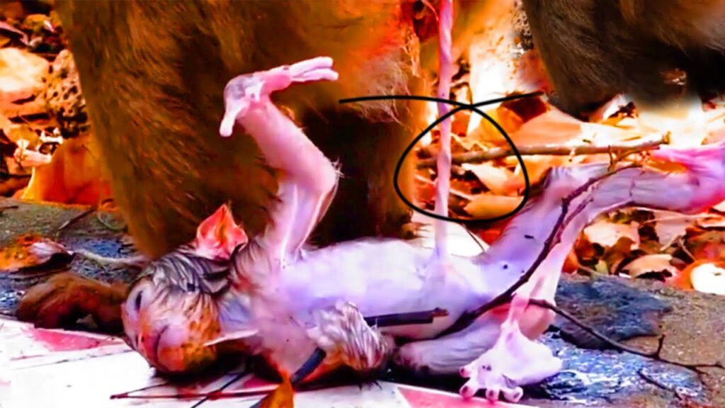 In the heart of the jungle, life is often both miraculous and heartbreaking. A new baby monkey had just entered the world, tiny and fragile, still clinging to the warmth of its new beginning. The baby’s eyes were barely open, its body weak and trembling as it searched instinctively for comfort and milk. But the moment that should have been filled with love and protection took a painful turn. The mother, after giving birth, unexpectedly turned away and abandoned her little one.