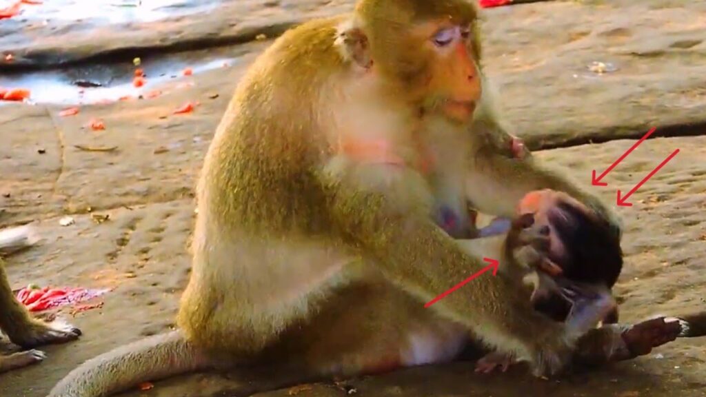 Sometimes the baby resists, squeaking in frustration, wanting to explore freely without rules. Yet the oldest mom does not give up. With patience, she repeats the same guidance again and again, showing him which fruits are safe, how to balance on branches, and when to stay close for protection.