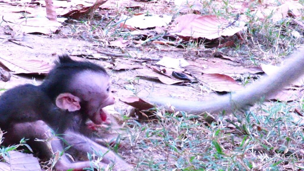 In the quiet corner of the forest, where sunlight dripped softly through the leaves, a tiny drama unfolded. A baby animal—small, fragile, and new to the world—sat trembling on the forest floor. Its eyes were wide and glossy, filled with confusion and tears that refused to stop falling. The little one had just learned a hard lesson: not every need is met the moment it is cried for.