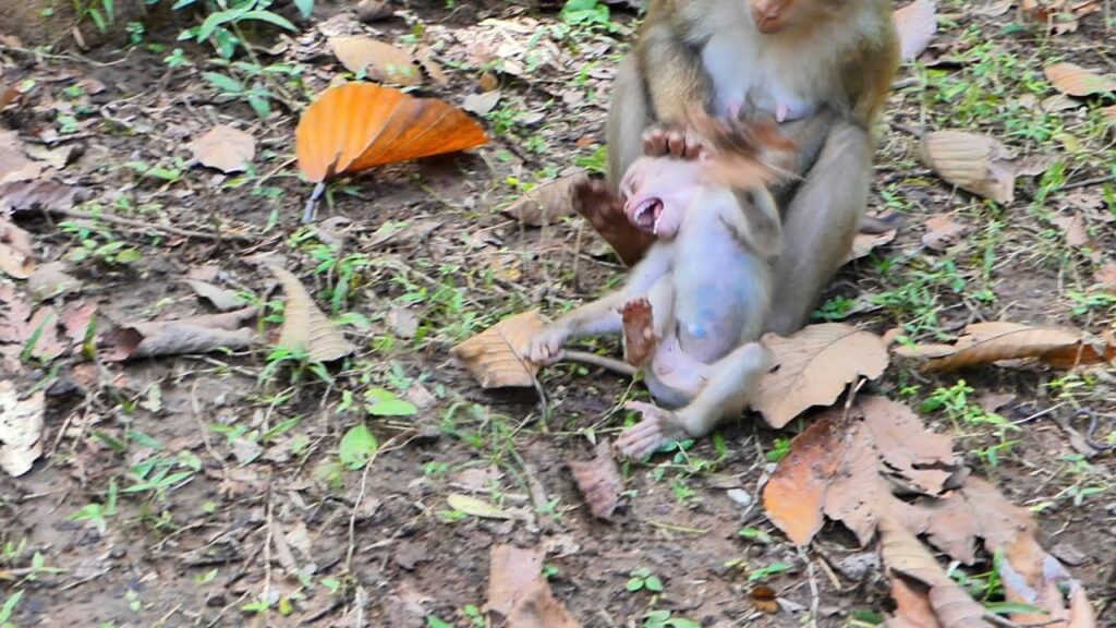 The other monkeys watched from a distance. Some seemed uneasy, others afraid to interfere. Lily tried to stand, her legs shaking, her sobs softening into weak whimpers. She still believed her mom would come back. Children always believe in their mothers, even after pain.