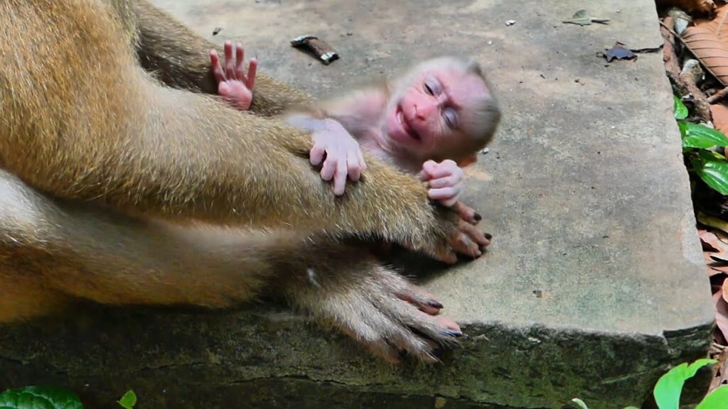 Libby stood nearby, alert and tense, her eyes scanning the surroundings even as Lily wailed. This wasn’t anger. It wasn’t cruelty. It was a hard lesson, delivered far earlier than Lily wanted. Libby knew the world around them was dangerous—other monkeys, sudden fights, the constant need to protect food and space. A baby who clings too long or moves at the wrong time can be hurt.