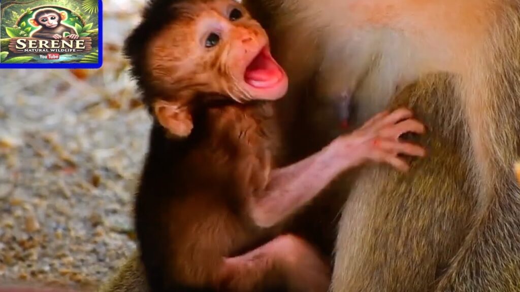 In a heart-melting moment that captures the innocence of new life, a tiny baby monkey clings tightly to its mother, its little eyes wide with hunger and curiosity. This delicate infant, barely days old, looks fragile yet full of life, depending entirely on its mother for warmth, comfort, and—most importantly—milk.