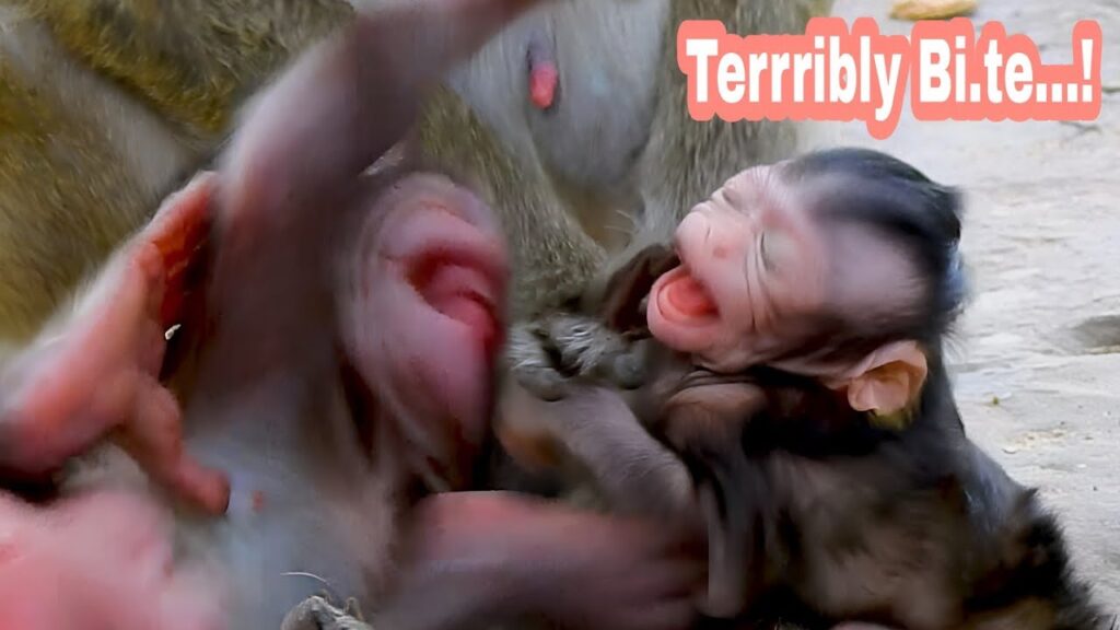 The quiet afternoon in the troop’s home suddenly turned tense when Mama Tara’s temper flared. Tiny baby Tia, barely old enough to understand the world, had been clinging to her mother’s chest, hoping for a comforting sip of milk. But instead of the gentle care she needed, Tara’s patience broke. Without warning, she bit down sharply on Tia’s fragile arm. The sudden cry pierced the air, a heartbreaking sound that made every onlooker’s chest tighten.