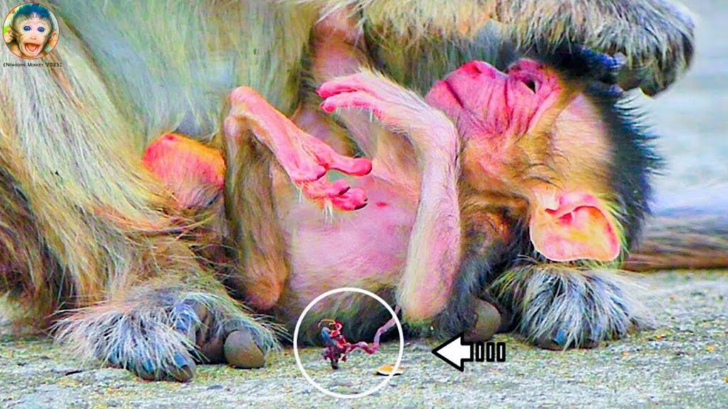 Just hours after giving birth, Alika’s maternal instincts kicked in strongly. With delicate fingers, she gently inspected the umbilical cord area of her tiny baby, ensuring it was clean and undisturbed. Her eyes, full of concern yet calm, watched every twitch and movement, guarding her baby like a true protector. The umbilical cord, still fresh and tender, needed time to dry and fall off naturally — and Alika seemed to know this instinctively.