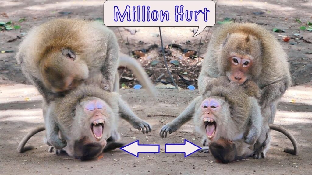 The forest was filled with sudden cries that broke the calm afternoon. A mother monkey clutched her baby tightly to her chest, trembling as both of them cried out in pain and fear. Moments earlier, a big dominant monkey had attacked without mercy. His teeth sank deep into the mother’s arm, and in her panic to protect her little one, she stumbled and screamed. The baby, too small to understand but old enough to feel terror, shrieked and clung to her fur, his tiny hands shaking.