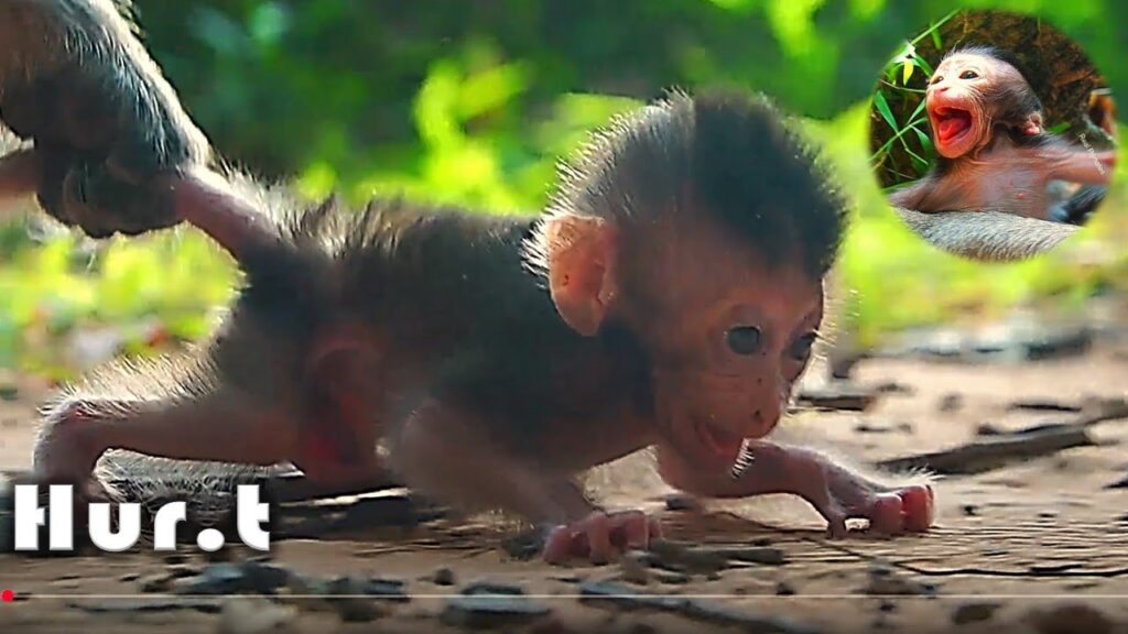 Poor little Braxton! The tiny baby monkey was just beginning to take his first shaky steps, wobbling with all his strength to balance his soft little body. Every moment was precious as he tried to explore the world on his own legs. But suddenly, something unexpected happened—Mom Brinn reached out and grabbed Braxton’s tail, dragging him back harshly. It wasn’t gentle. It wasn’t kind. It made baby Braxton cry out in fear and pain.