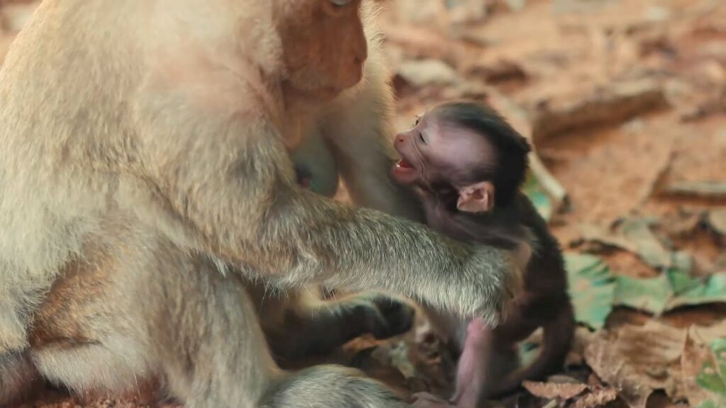 The tiny baby monkey sat on the cold ground, his little arms reaching up with desperation. His soft cries echoed through the trees as he looked up at his mother with pleading eyes. “Mom, I’m sorry… please help… I’m so hungry…” The words may not have been spoken aloud, but his heart was screaming with every weak cry he made.