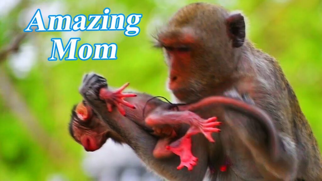 In the soft morning light filtering through the forest leaves, Mimi, a proud macaque mom, was seen gently cradling her newborn baby in her arms. Her movements were so graceful, tender, and captivating that even the other members of the troop paused to watch. There was a certain rhythm in the way she moved—slow sways and gentle hops, all timed perfectly to keep her tiny baby comfortable and close to her chest.