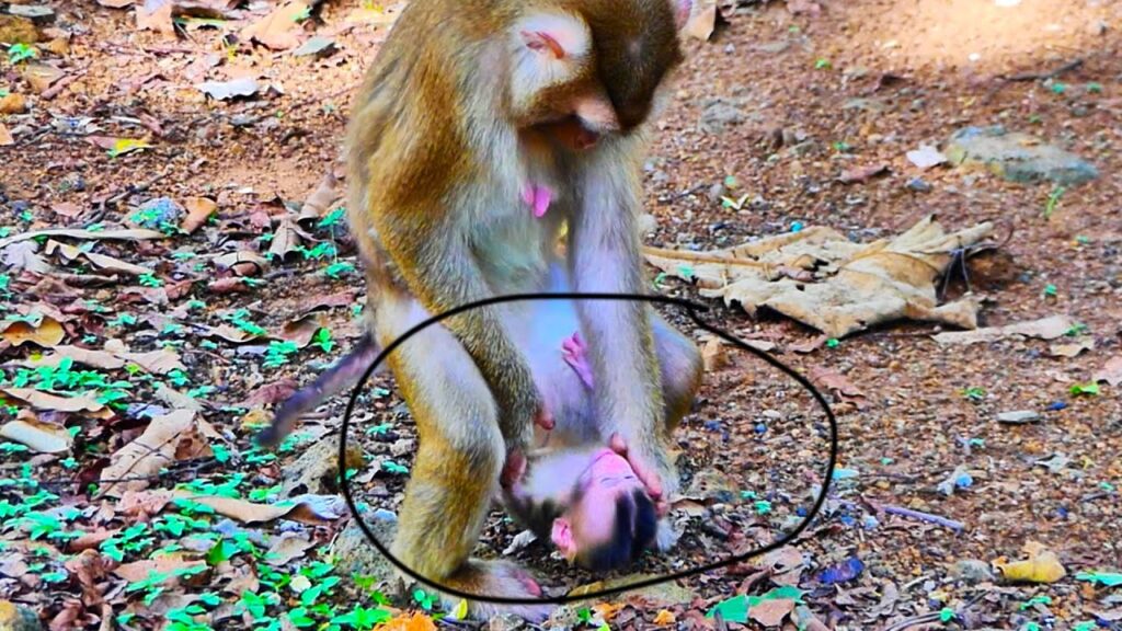 In the quiet forest clearing, the morning light touched the leaves softly, but the peace was broken by a very s.a.d moment. A tiny new baby monkey, still unsteady on weak legs, clung close to its mother. The baby adored her, reaching out with small hands, trusting her warmth and protection. But suddenly, the mother m.o.m p.u.s.h.e.d the little one down to the ground. The baby rolled gently onto the earth, shocked and confused, tiny eyes wide with fear.