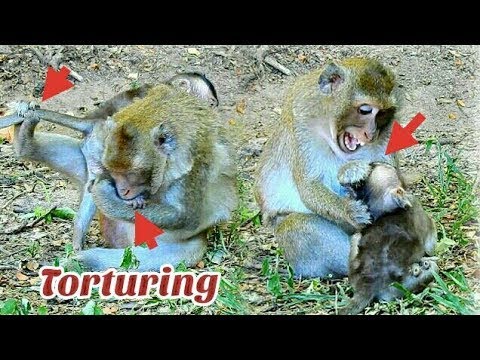 The mother monkey appears restless and impatient. She pulls, pushes, and drags the baby as if forcing it to learn lessons far too early. The baby monkey is still weak, its hands slipping, its legs shaking. Each rough movement makes the baby cry louder, its face twisted with pain and fear. The cries are not just noise—they are a plea for love, for safety, for the warmth every baby deserves.