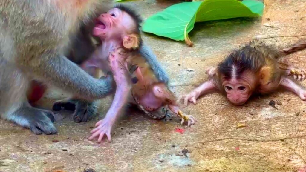 In the quiet forest, a heartbreaking scene unfolded when a young mother monkey, exhausted and weak, could no longer hold her tiny newborn. The little baby, lovingly called BB by the watchers, had only just entered the world, still fragile, still learning to breathe and cling. But fate was unkind—the mother, drained after giving birth, lay down helplessly. Her weakness forced her to step back from the care every newborn desperately needs.