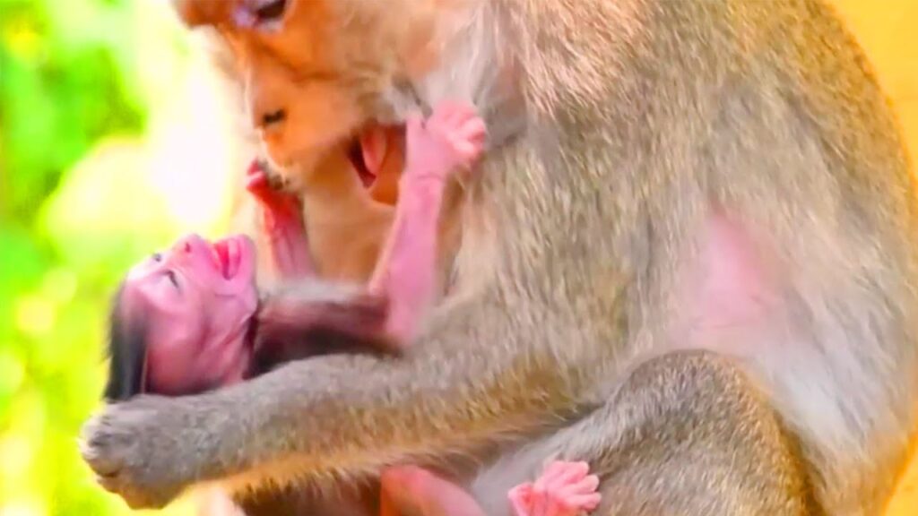 In the quiet forest, where the trees swayed gently in the wind, a tender yet heartbreaking scene unfolded between a mother monkey and her beloved baby, BBB. For weeks, BBB had clung tightly to his mother’s chest, depending on her milk for comfort and strength. But as time passed, the mother knew that the moment had come to begin the difficult process of weaning. What looked like punishment to outsiders was, in truth, an act of guidance from a caring but determined mother.