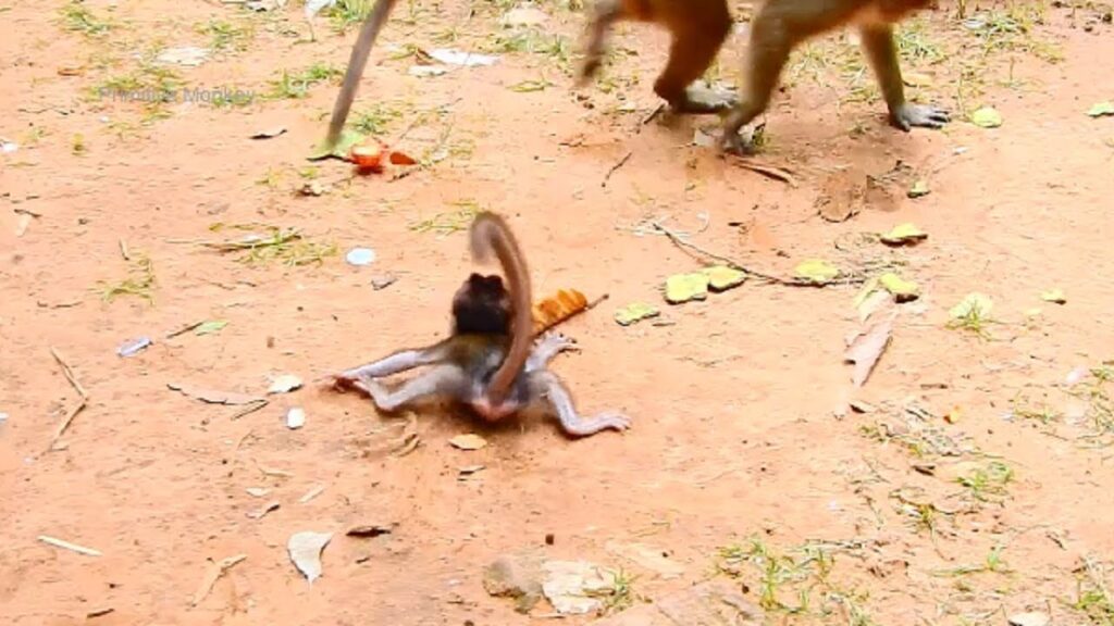 In the quiet corner of the temple yard, chaos suddenly erupted. Daniela, once the calm and gentle mother monkey, turned into a storm of fear and rage. Little baby Dana clung to her mother’s chest, trembling, while DeeDee — the wild, unpredictable female — charged forward with eyes burning in madness. The air filled with sharp cries and the rustling of dry leaves as the two mothers clashed fiercely.