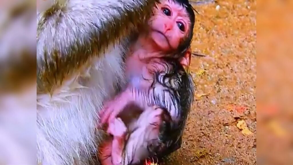 Under the soft gray sky, gentle raindrops began to fall through the canopy of the forest. The jungle was quiet except for the sound of water tapping on leaves. Beneath a low tree branch, a mother monkey named Luma was crouched down, breathing heavily. She was in labor, her face tense but determined. Moments later, with a final push, her tiny baby was born into the wet world.