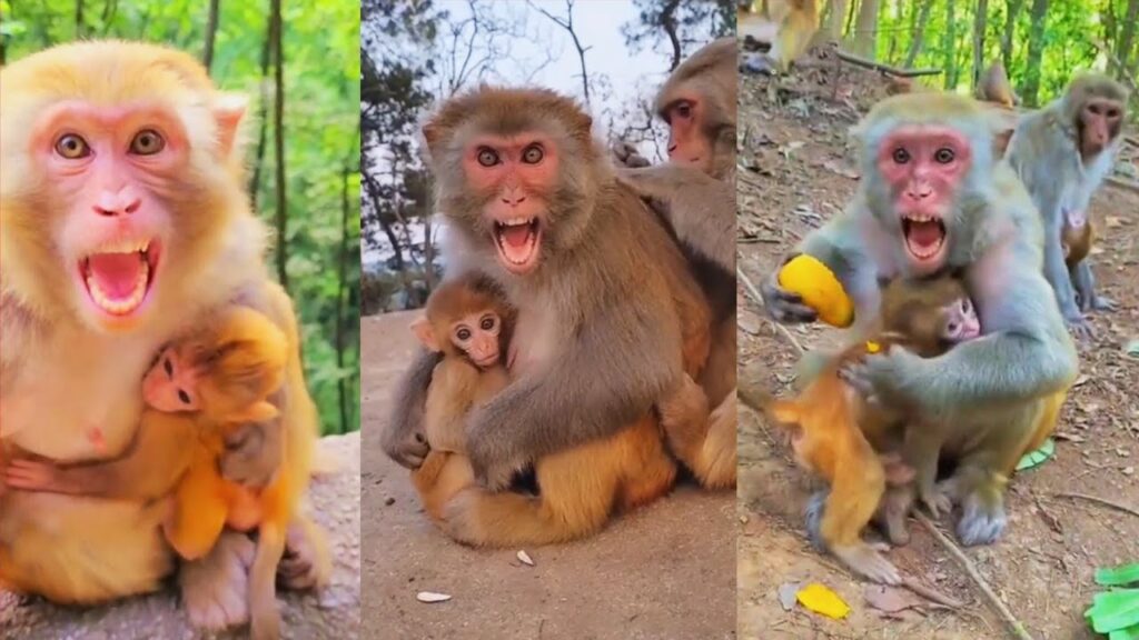 Whenever another monkey came near, the mother’s body tensed. Her eyes became sharp, watching every movement. She shifted her baby to her belly and turned her back toward the crowd, sending a clear warning without a sound. This baby was hers, and no one was allowed to touch, pull, or even come too close. A young female reached out once, curious and gentle, but the mother bared her teeth and let out a low growl. The message was understood immediately. The forest respected a mother’s warning.