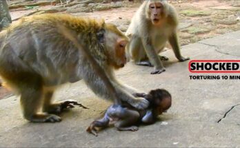 Whenever another monkey came near, the mother’s body tensed. Her eyes became sharp, watching every movement. She shifted her baby to her belly and turned her back toward the crowd, sending a clear warning without a sound. This baby was hers, and no one was allowed to touch, pull, or even come too close. A young female reached out once, curious and gentle, but the mother bared her teeth and let out a low growl. The message was understood immediately. The forest respected a mother’s warning.
