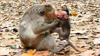 In the quiet green forest, a young mother monkey sat high on a broad branch, cradling her tiny baby close to her chest. The baby was only a few days old, still weak and learning the world through soft cries and wide, curious eyes. The mother’s arms formed a warm shield around her child, and her heartbeat was the first sound the baby trusted.