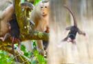 Morning sunlight filtered through the tall jungle trees, touching the leaves with warm gold. Baby Leo, a tiny monkey with soft brown fur, clung to a branch while looking around for his mother, Libby. Normally, Libby would sit nearby, grooming him gently and sharing sweet fruits. But today felt different. Leo’s small face looked confused and a little dusty from climbing around alone. 🐒🍃