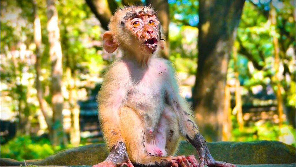 In the quiet, humid morning of the forest edge, baby LEO sat still on the soft, wet ground, blinking sleepily as the world around him slowly woke. His tiny body felt heavy, drained from a long night of restless crying and little energy. But his mother, always alert and always moving, had already decided it was time to change locations, searching for a safer spot with warmer sunlight.