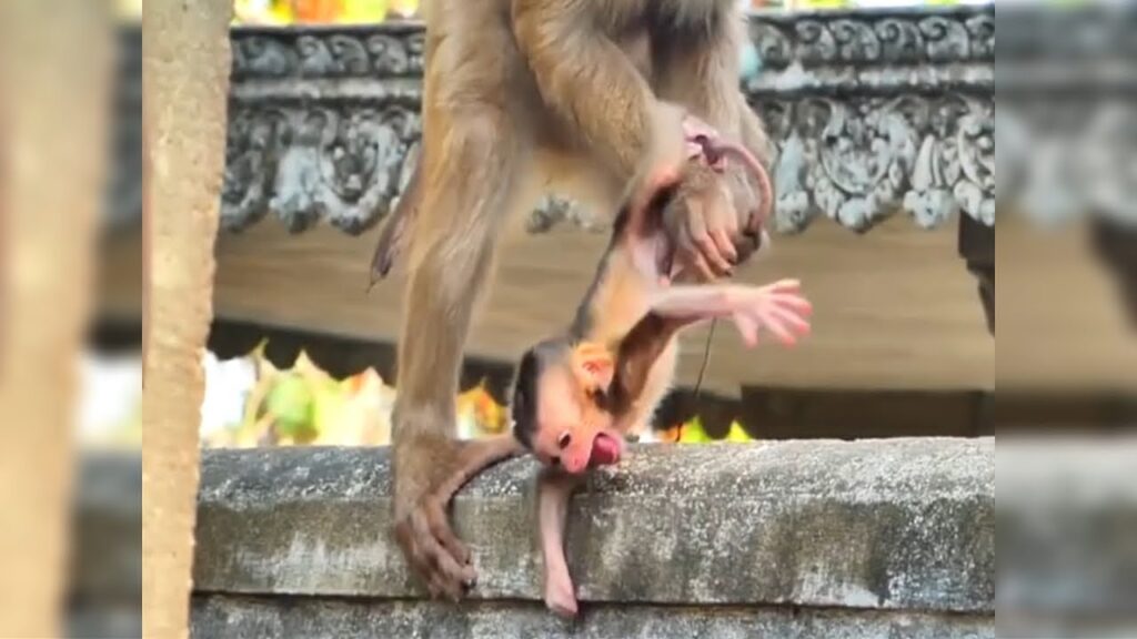 In the gentle morning light of the forest, a young monkey mother sat quietly, her eyes filled with a mixture of awe and uncertainty. It was her first day as a mother. Cradled in her arms was her tiny newborn, still pink and fragile, relying completely on her for warmth, food, and safety. The new mother, though inexperienced, was slowly discovering the instincts within her.